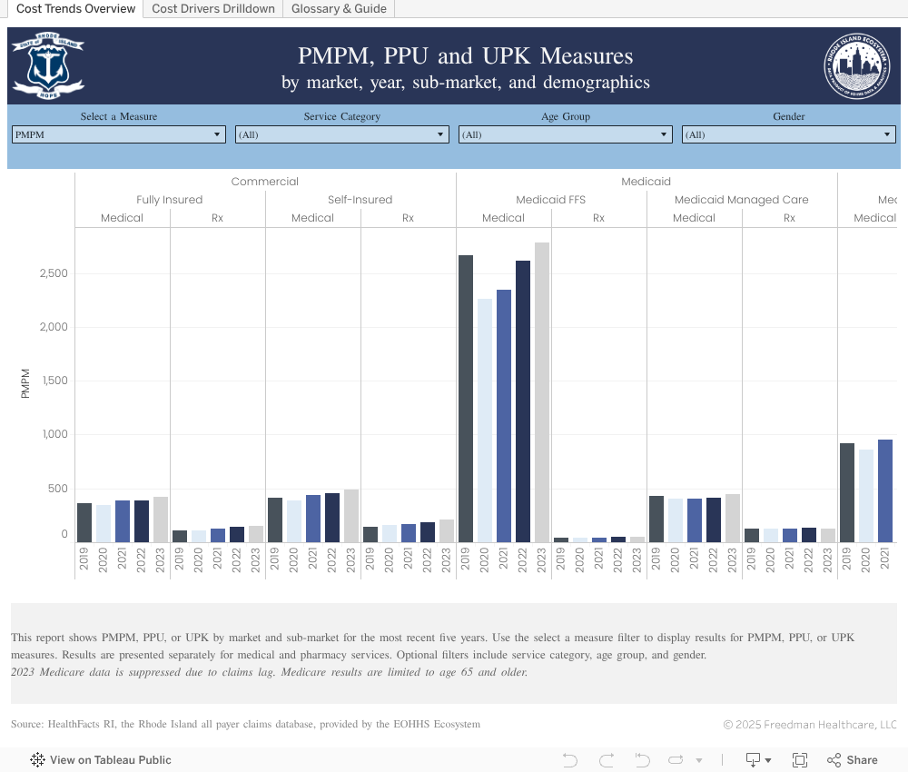 Data for these dashboards was obtained through an approved request to the Rhode Island All-Payer Claims Database as administered by the Rhode Island Department of Health (RIDOH). Data was obtained for 2019-2023. RIDOH is not responsible for the author's analysis, opinions and conclusions contained in this document.